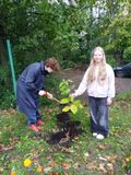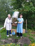 Ученики совместно с учителями технологии( труды) Елена Ралькевич и Вероника Ласкина подготовили и высадили кусты шиповника, гортензии и др.