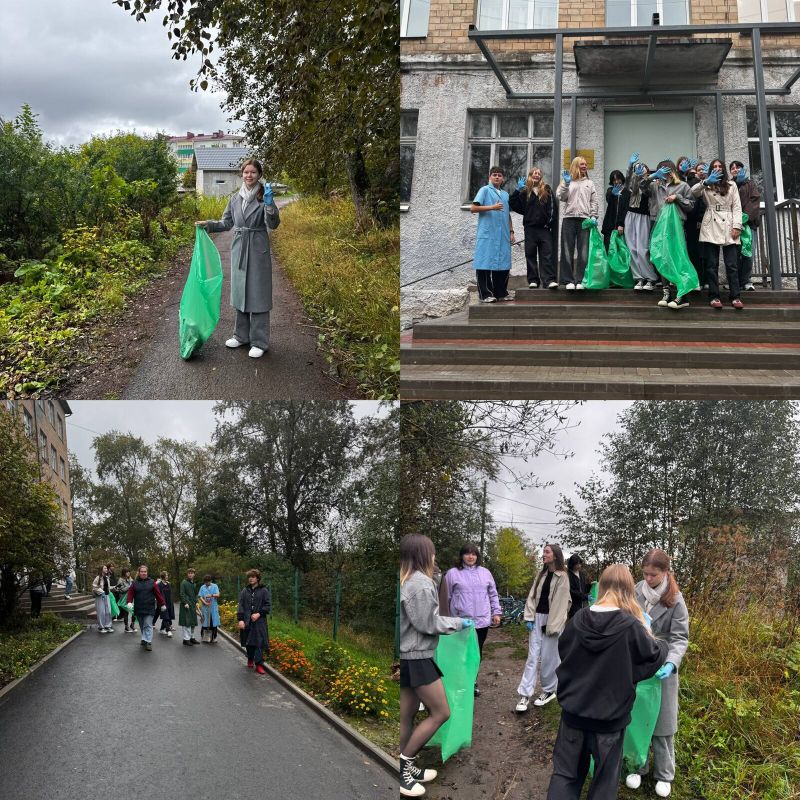 7, 8, 9 классы приняли участие в уборке территории школы.