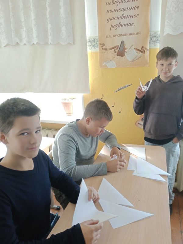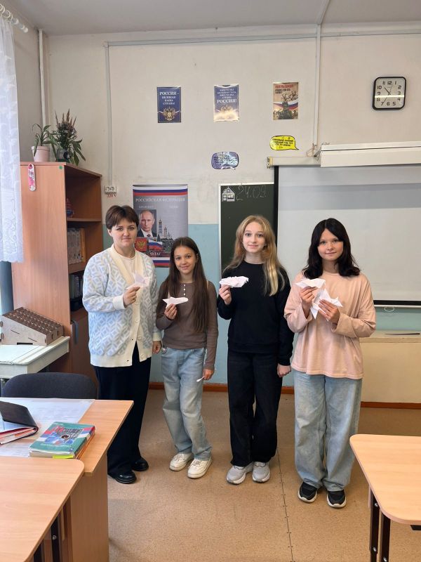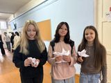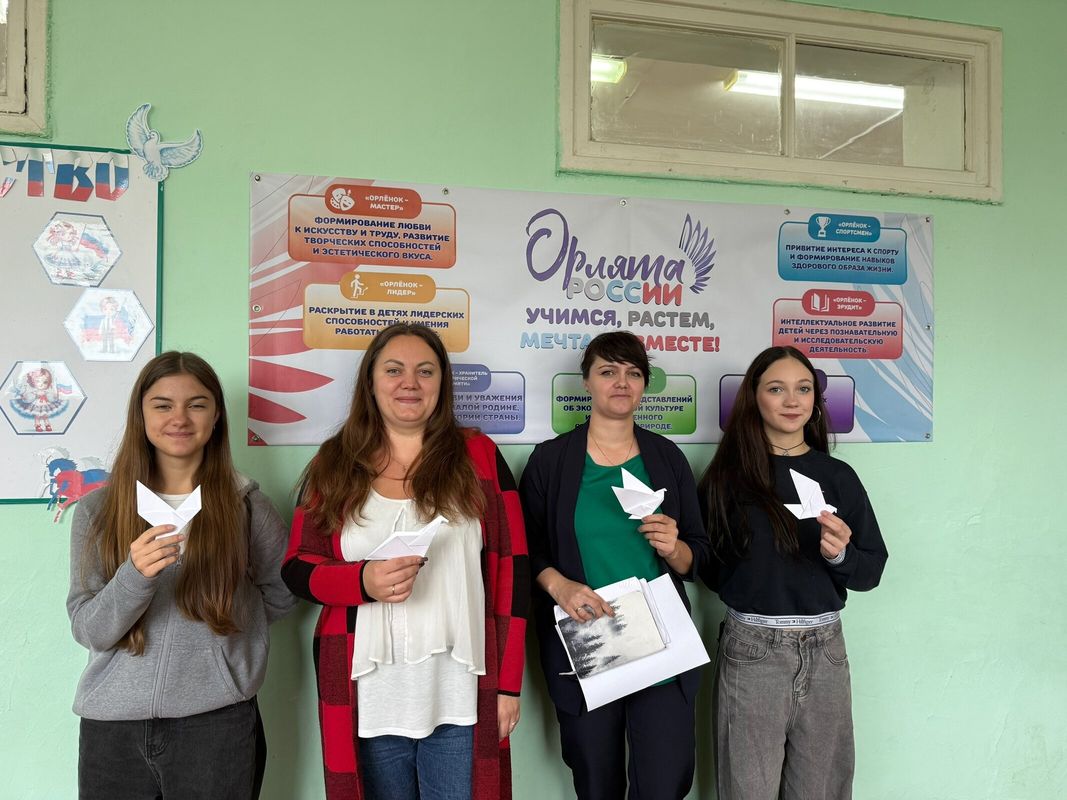 Участники подарили обучающимся и педагогам школы бумажных белых голубей, которые изготовили своими руками в технике «оригами».