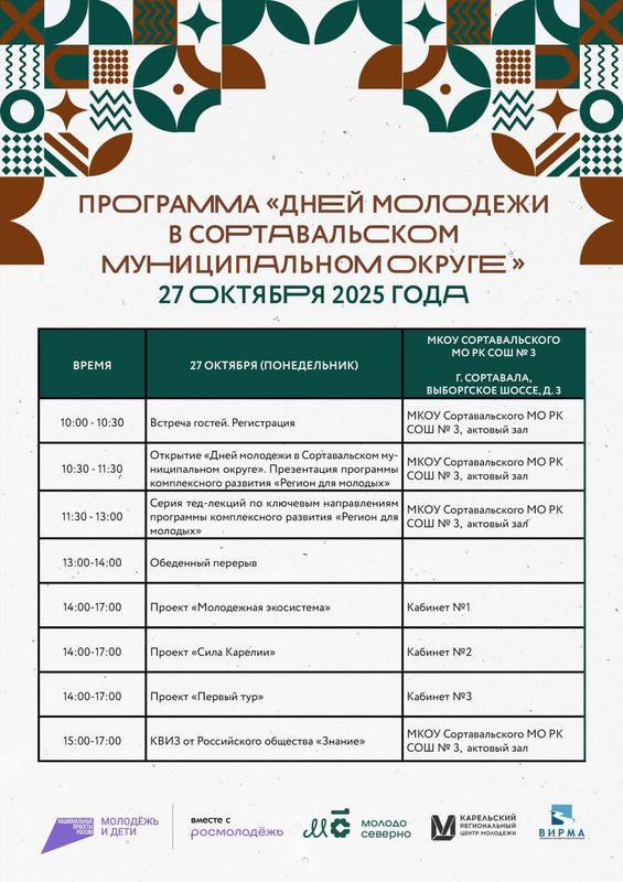 27 октября(в понедельник) на базе МКОУ Сортавальского МО РК СОШ №3 пройдет форум "ОКЕЙ Карелия!" Обязательна регистрация по ссылке - https://forms.yandex.ru/u/68de22664936391a9654b231 #Школа6гСортавала