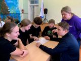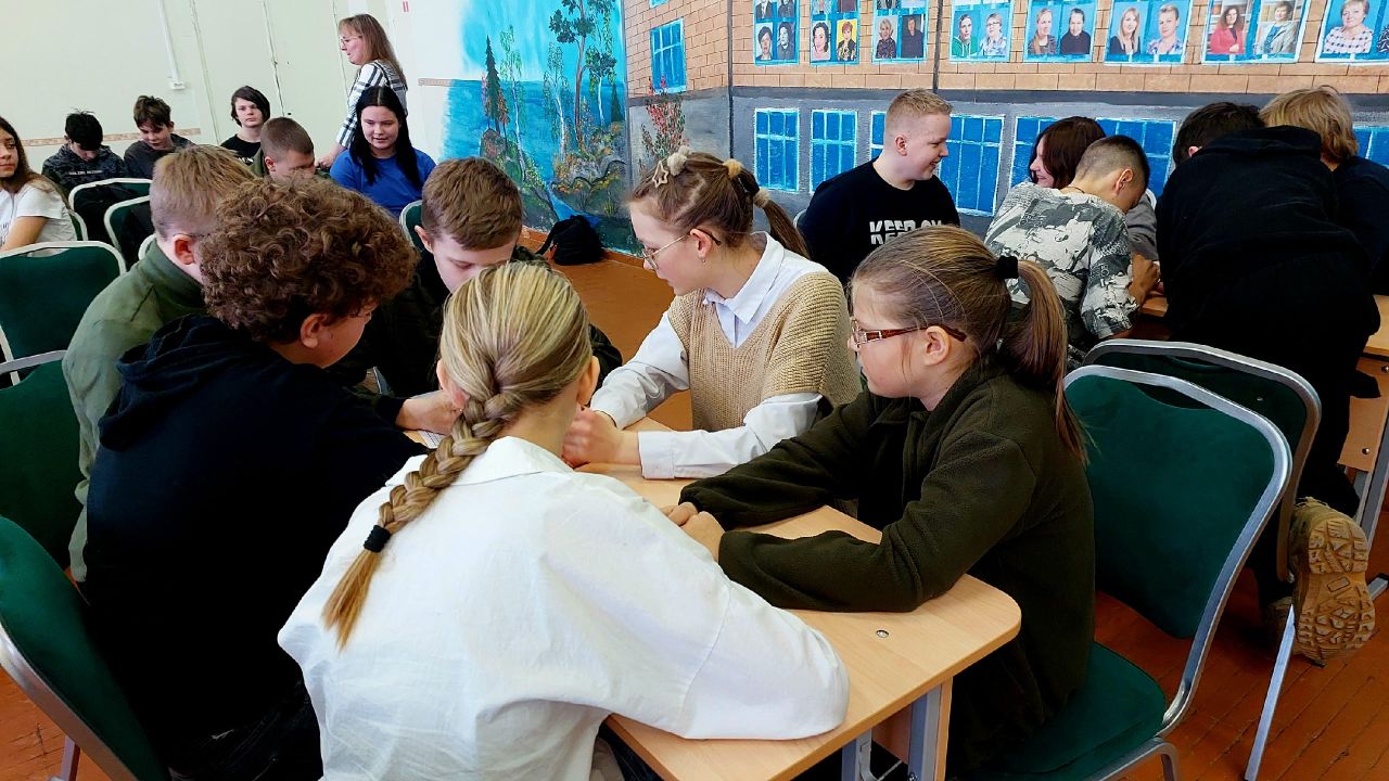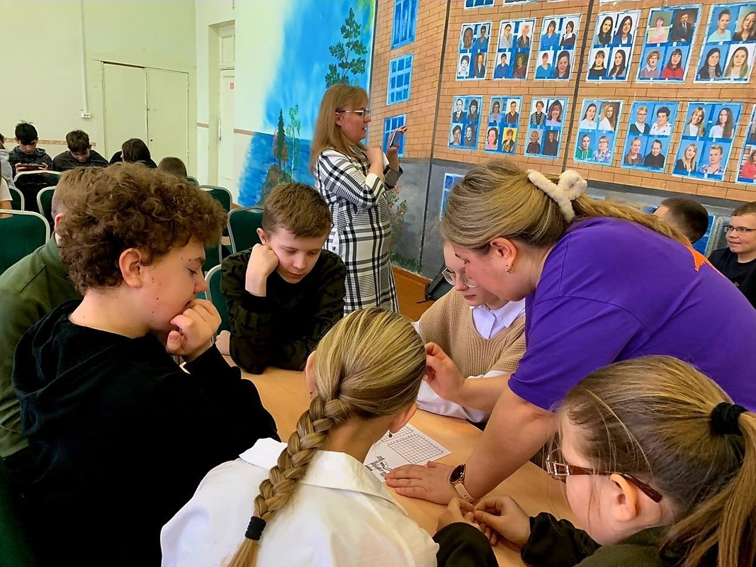 В рамках праздничной даты советник директора по воспитанию Анна Викторовна Лебедева , при поддержке учителей русского языка Марианны Александровны Нестеренко и Татьяны Александровны Слепченко , организовала для обучающихся 7-х классов игру «Лингвистический шторм».