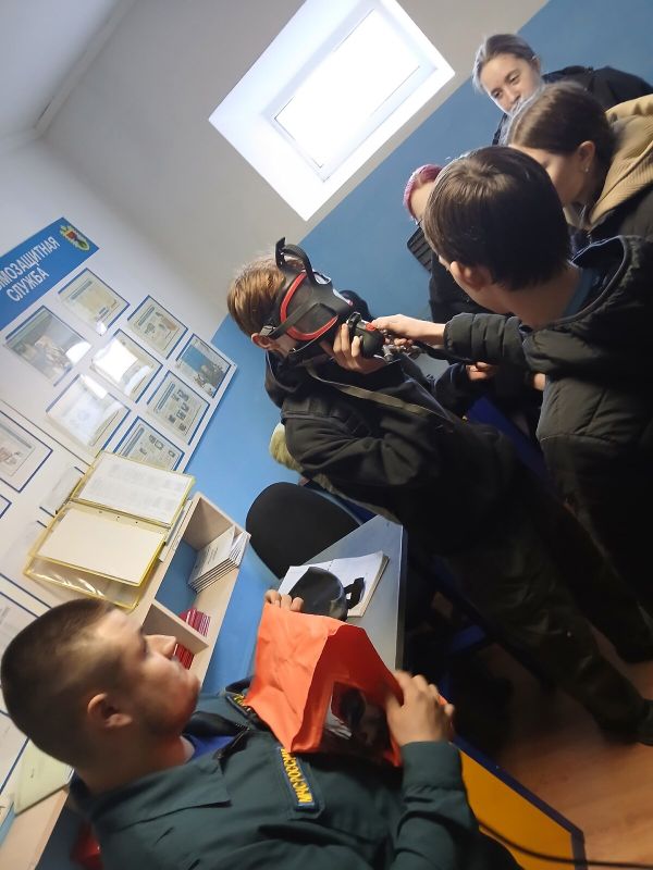 Ребята могли рассмотреть вблизи специальные костюмы, которыми пользуются пожарные во время тушения пожаров, дыхательные аппараты и другие приспособления, необходимые при выполнении задач по ликвидации чрезвычайных ситуаций.